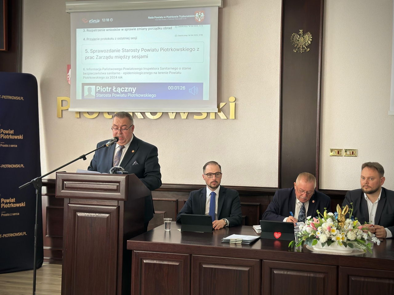 Tuż przed zbliżającymi się Świętami Wielkanocnymi Przewodniczący Rady Powiatu Bernard Matyszewski zwołał XV Sesję Rady Powiatu Piotrkowskiego. W obradach, oprócz radnych i władz powiatu, uczestniczyli także Burmistrzowie, Wójtowie, przedstawiciele służb mundurowych, inspekcji sanitarnej oraz instytucji realizujących zadania powiatu.
